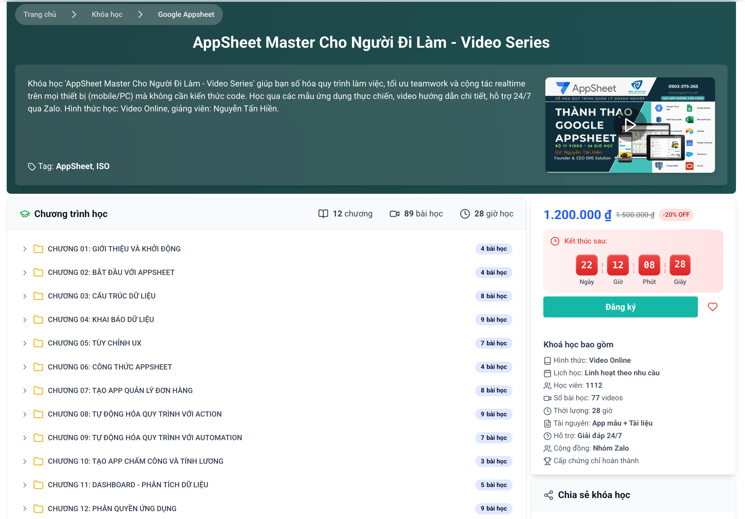 Tặng kèm AppSheet Master + App mẫu trị giá đến 10.000.000. Xem chi tiết: liên kết khóa học.
